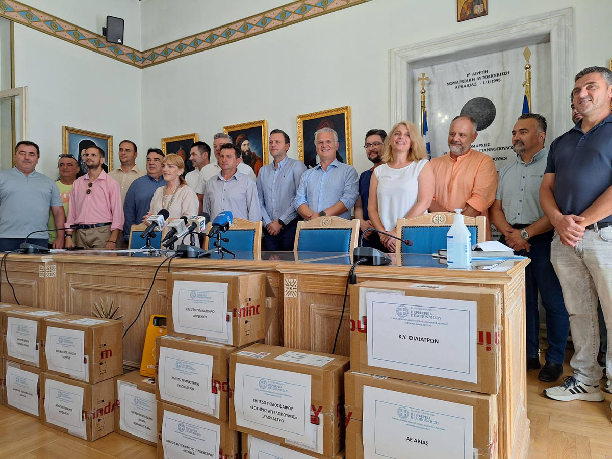 Στο πλαίσιο της πρόληψης και της αποτελεσματικής αντιμετώπισης εκτάκτων περιστατικών Δημόσιας Υγείας, ο Περιφερειάρχης Πελοποννήσου Δημήτρης Πτωχός, από κοινού με τον Αντιπεριφερειάρχη Δημόσιας Υγείας Χρυσοβαλάντη Μέλλο, προχώρησαν στην παράδοση δεκαοκτώ (18) Αυτόματων Εξωτερικών Απινιδωτών (AED) σε Φορείς και Αθλητικά Σωματεία της Περιφέρειας Πελοποννήσου.