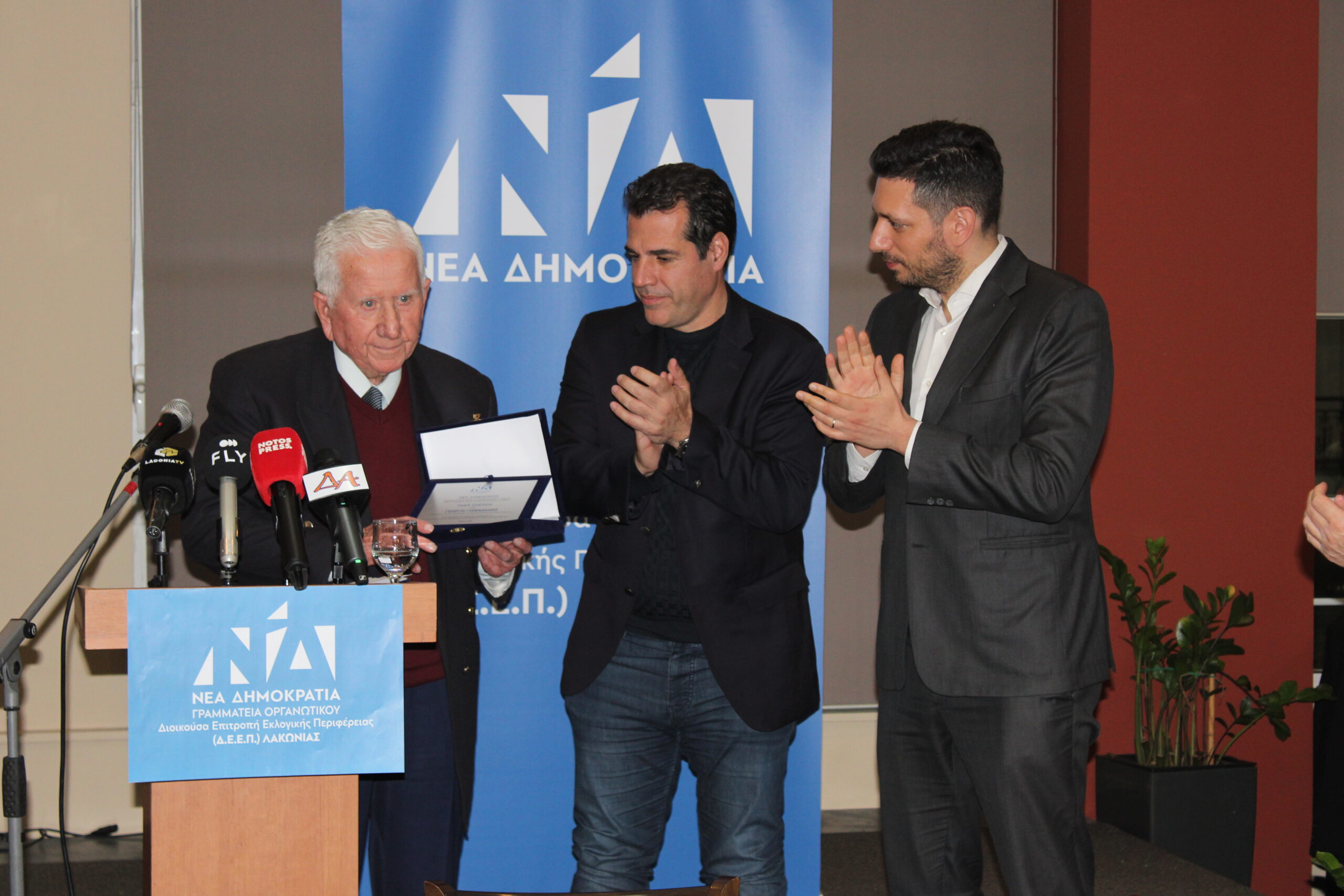 Κορυφαία στιγμή της βραδιάς ήταν η απονομή τιμητικής πλακέτας στον Γεώργιο Γιαννακάκο, ο οποίος διετέλεσε Πρόεδρος της Κοινότητας Σκάλας, Νομαρχιακός Σύμβουλος, Αντινομάρχης και Πρόεδρος της Τοπικής Οργάνωσης ΝΔ Σκάλας, αφιερώνοντας δεκαετίες ανιδιοτελούς. προσφοράς στον τόπο και στις αξίες της παράταξης. Την απονομή πραγματοποίησαν ο Υπουργός Μετανάστευσης και Ασύλου κ. Αθανάσιος Πλεύρης και ο Αναπληρωτής Υπουργός Μεταφορών κ. Κωνσταντίνος Κυρανάκης.