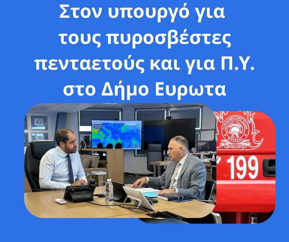 Με τον Υπουργό Κλιματικής Κρίσης και Πολιτικής Προστασίας, κ. Γιάννη Κεφαλογιάννη, συναντήθηκε ο Βουλευτής Λακωνίας Νεοκλής Κρητικός, θέτοντας επί τάπητος τρία καίρια ζητήματα που αφορούν την πυροπροστασία και την ενίσχυση των υπηρεσιών στην Π.Ε. Λακωνίας: τη μονιμοποίηση των 427 Πυροσβεστών Πενταετούς Υποχρέωσης, την ανάγκη για νέο πυροσβεστικό εξοπλισμό σε Σπάρτη και Ξηροκάμπι, καθώς και την ίδρυση Πυροσβεστικής Υπηρεσίας στον Δήμο Ευρώτα. Ο Βουλευτής ενημέρωσε για την Ερώτηση που έχει ήδη καταθέσει και έλαβε διαβεβαιώσεις για συγκεκριμένες εξελίξεις το επόμενο διάστημα.