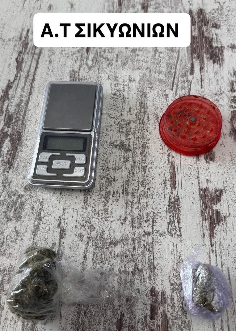 - ποσότητα κάνναβης, συνολικού βάρους -10,5- γραμμαρίων, ζυγαριά και τρίφτης, στην Κορινθία,